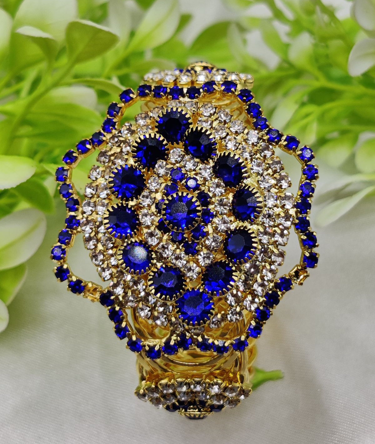 This collection includes stunning variations such as classic crystal golden design, bold red gemstone style, and royal blue gemstone design. Each option brings a unique and eye catching appeal, allowing you to choose according to your style. Imported Exquisite Crystal Embellished Adjustable Bracelet suits both traditional and modern outfits effortlessly.