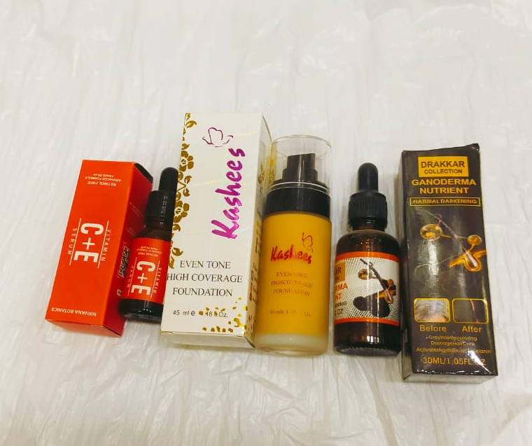 The Pack of 3 Vitamin C & E Serum + Hair Darkening Serum + Kashees Foundation is perfect for those who want a simple yet effective beauty routine without buying multiple products separately.